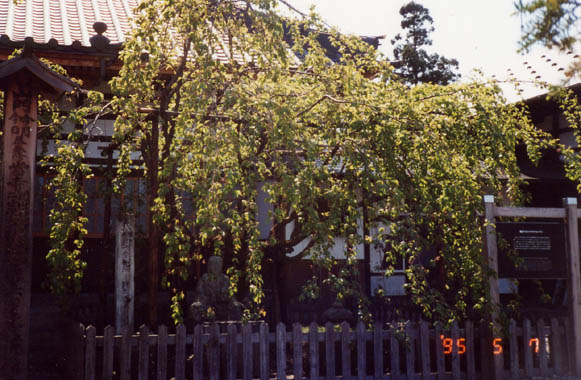 JR山田線・上盛岡駅近くの寺町の一角、竜谷寺の門前にある。大正9年盛岡で初めて発見された新種なのでモリオカシダレの名がある。葉に毛がないのが特徴。主幹の大部分が腐朽し、指定当時の面影は無いが、辺材の一部が成長し小振りにまとまっている。総樹令は150年位で、雑種の最大値に近いと認められている。今では盛岡市内でかなり植栽されているようだ。昭和11年、国指定天然記念物。近くに報恩寺の五百羅漢堂がある。