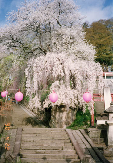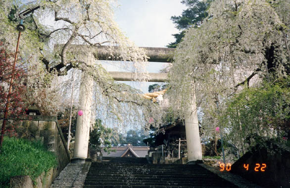 開湯900年を誇る赤湯温泉街の烏帽子山公園は、以前から千本櫻の名で知られ「日本のさくら名所100選」にも選ばれた地で、春には「櫻まつり」が盛大に開かれる。大鳥居脇や裏階段付近にある枝垂櫻は見応えがある。園内の烏帽子山八幡宮には希石・烏帽子岩や、継目無しで日本一の石の大鳥居などもある。