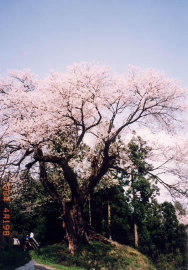 鮎貝城主本庄家の子守伝説が残る地蔵堂の脇にある。幹周り7mの巨木。主幹の一部が折れているが全体の樹容よく花付きも佳い。