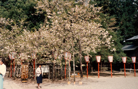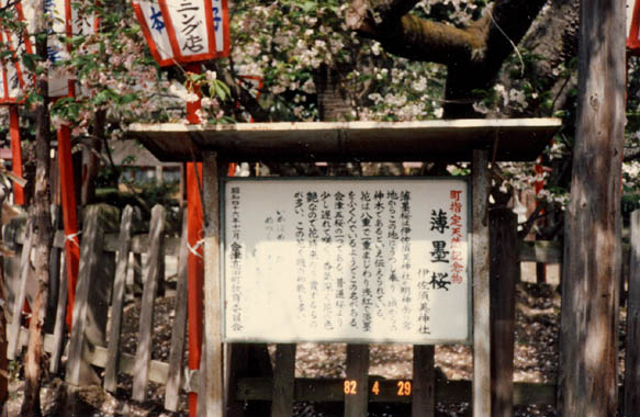 会津五名櫻の一つ。会津高田町、会津総鎮守・伊佐須美神社の境内南にあり、当神社の御神木と伝えられている。花は八重で一重もまじり、浅紅で薄墨を含んでいる様なのでこの名がある。