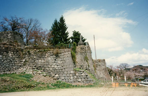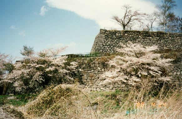 白河駅に近い小峰城址は元白河城主・丹羽長重が築いた平山城。今は僅かにその巨大な石垣に面影を残すのみだが、春には櫻の若木が色を添える。