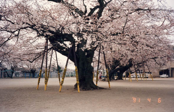 土浦駅の北、旧水戸街道沿いの真鍋小学校校庭に5本の古櫻がある。明治40年現在地に真鍋小学校が移築された時記念に植えられたもので、昭和32年県の天然記念物に指定されている。ソメイヨシノの平均寿命を遥かに超えているが、樹勢も良く見事な花を付ける。近くに旧県立土浦中学校本館(国の重要文化財)や真鍋宿の家並みが残されている。