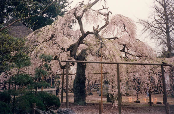 水戸駅の東南方5キロ程の常澄村に六地蔵寺がある。大同2年(807年)開山と伝えられる古刹で、本尊は6体の地蔵菩薩である。山門を潜ると本堂前庭に水戸光国公が賛嘆したと云われる枝垂櫻がある。上に伸びた太枝の一部に枝枯れが見られるが、全体的に樹容も良く、支柱に支えられて大きく枝を伸ばした姿は優美である。境内には他にも一寸小振りな枝垂櫻や、ソメイヨシノが眼を愉しませてくれる。