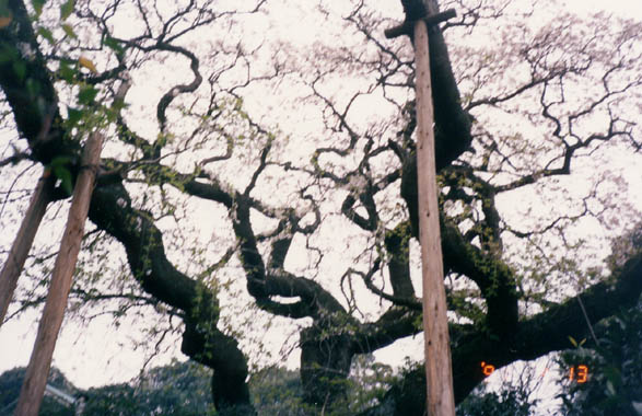 筑波山系の南端、新治村小野地区に向上庵の枝垂櫻はある。土浦駅より「ゆうもあ村」行きのバスに乗り終点一つ手前の東城寺下車、歩いて20分の所。山の斜面の緑をバックに白く浮き出た姿は素晴らしい。こんもりとした樹容。昭和45年県の天然記念物に指定された。近くに板東26番札所の清滝寺や小野小町の墓などがある。
