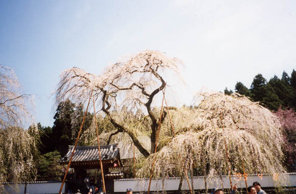 埼玉県西部の奥秩父、荒川村上田野に清雲寺がある。武州中川の駅から歩いて15分程の地である。花見時ともなれば売店も出て大賑わい。本堂前広場のほぼ中央付近に県指定天然記念物のシダレ性の強いエドヒガンがある。600年ほど前清雲寺が開創された時、記念に植えられたという伝説が残る。主幹の分かれた太枝の1部が途中で折れ、枝張りが特異な姿をしている。又主幹の途中から四方に小枝が伸びて花笠を付けたように咲く様子も珍らしい。一段高い本堂前の大きな枝垂櫻をはじめ境内には大小、紅白とりどりの枝垂櫻が咲き誇る。