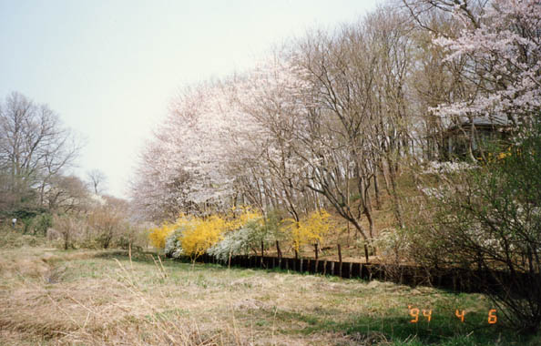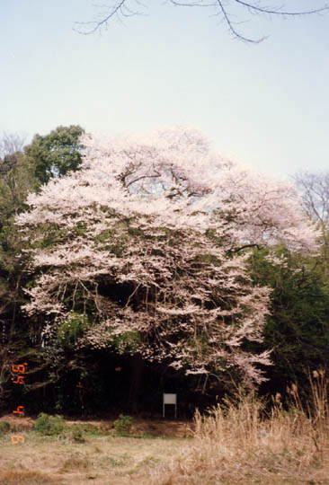 埼玉県中部の北本市。市の西端を流れる荒川櫻堤の傍に埼玉県自然学習センターがある。園地の外れの森をバックにエドヒガンの大木がある。外の櫻より早く淡紅色の花が咲き、葉(歯)のない時に花が咲くことから、ウバヒガンとも云われる。周囲は自然公園で広々とした田野に早春の風景を愉しむことが出来るが、バス便のないのが不便。昭和53年、市指定天然記念物。