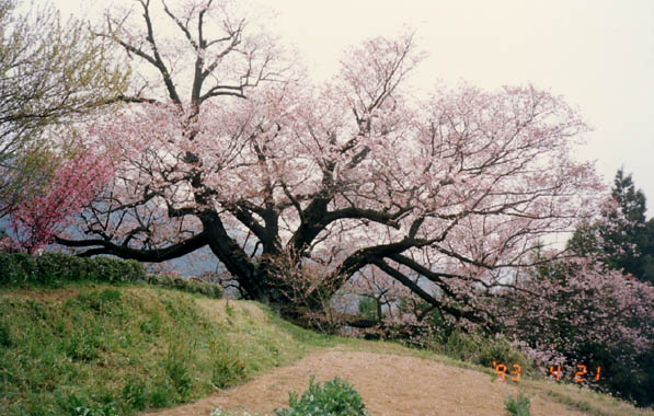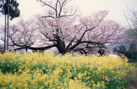 東京の奥座敷、秋川渓谷沿いの五日市町。その中央に位置する城山の山腹に光厳寺がある。南北朝時代の光厳天皇がその名の由来という。本堂反対側の崖の縁に1本のシロヤマザクラがある。丁度満開で、樹令400年の古木らしく、年輪を感じさせる幹の太さと、真横に太腕を伸ばしたような枝張りで、びっしり花を付ける様子は寔に立派。都内最大級の巨木といわれ、昭和44年五日市町の指定天然記念物。平成5年には都の天然記念物に指定された。眼の下には竹林と菜畑が拡がり、彼方に奥多摩の山並みが連なる景勝の地でもある。帰路も街道沿いには造り酒屋があったり、山櫻の咲くひっそりした遊歩道があるなど充分楽しめる。
