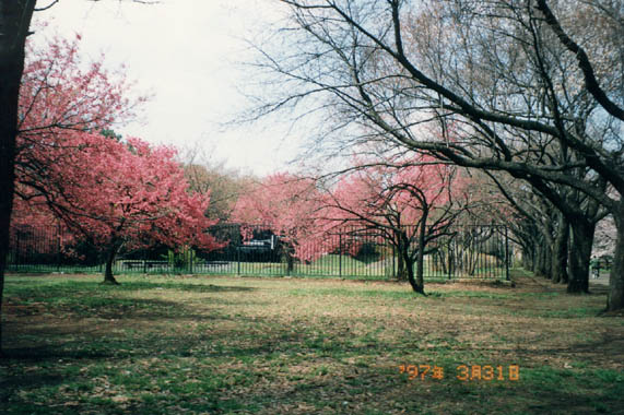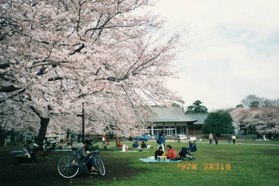 江戸時代から有名な花見の名所、小金井堤の櫻並木は戦争の影響や環境の変化で衰退。現在はその北側に拡がる小金井公園が多くの人を集める。園内中央付近の広場は休日には人で埋め尽くされる。殆どの公園はソメイヨシノが多いが、ここはヤマザクラが多いのが特徴。園内には「江戸東京たてもの園」があり、江戸東京の多彩な文化を象徴する建物が多数、移築復元されている。 |