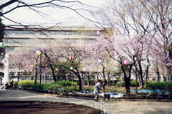 荒川区役所脇の小公園に枝垂櫻の群植が見られる。中々姿の良い木もあり、憩いの場となっている。