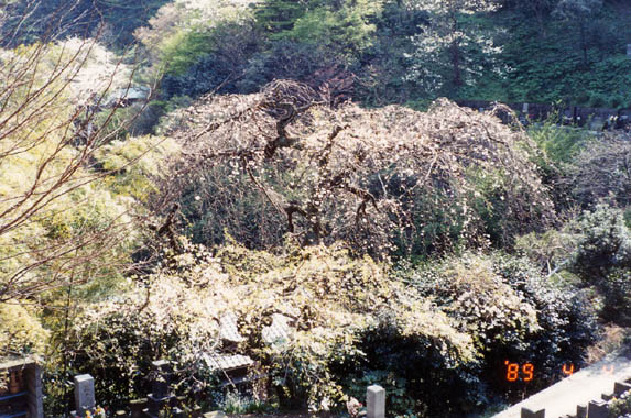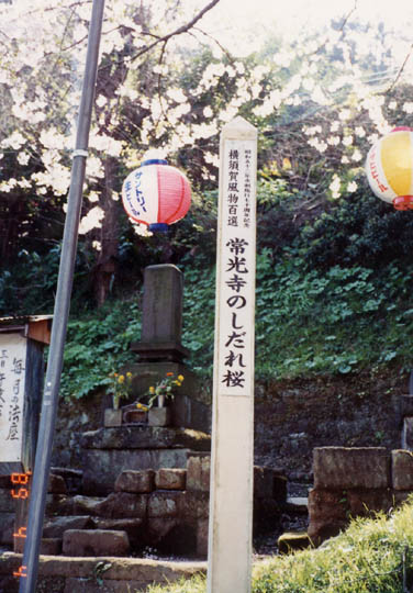 横須賀線の田浦駅を出て東に歩き、二つ目のトンネル・長浦隧道を出た所に常光寺がある。この寺は源実朝の菩提を弔うため家臣の鈴木常光が建立したものという。寺の右手の石段を登った山の斜面に枝垂櫻の老樹がある。周りに木が多く花の付きも良くなかった。昭和52年横須賀風物百選に選ばれた。