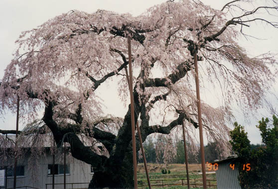 長野県に接する八ケ岳山麓の小淵沢町、神田地区にオオイトザクラがある。季節には中央線の車窓からも眺められる位置である。当地の小松氏の先祖が広野神社を創設。その供米産田を神田と称したので、神田櫻という名が付いたという。根元から四方に伸びた太枝は逞しく、枝の拡がりも見事。雪を頂く八ケ岳や甲斐駒ケ岳との取り合せも抜群。只近接して住宅や倉庫があるのが残念。昭和41年県の天然記念物に指定。