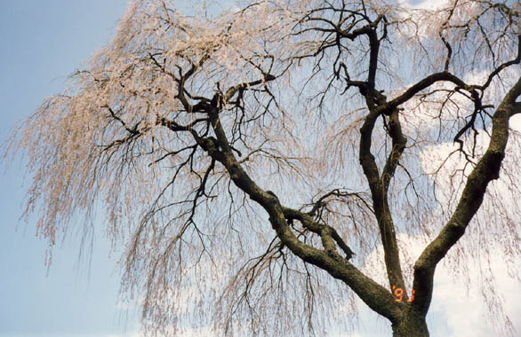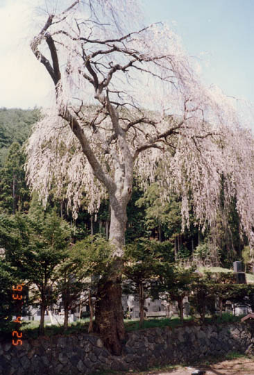 昌福寺の近く川岸2丁目の毘沙門堂の傍らに枝垂櫻があった。墓地の石垣の中から生え出している感じ。樹形が一寸片寄っているがまだ若木なのでこれからが楽しみ。境内には市指定天然記念物の大杉もある。