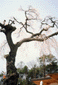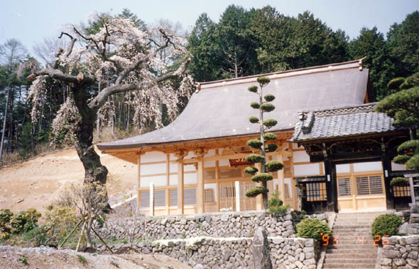 飯田線羽場駅より西へ1.5km程の北大出地区の明光寺境内に枝垂櫻を訪ねる。新築・整備されたばかりの本堂前広場に唯1本佇立。老樹で枯損のためか太枝が大分切断されて樹容悪く、花付きもまばらで、古い写真の面影はまるで無い。痛ましいかぎりである。