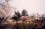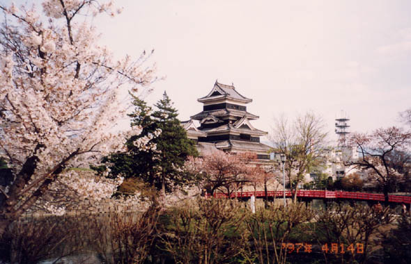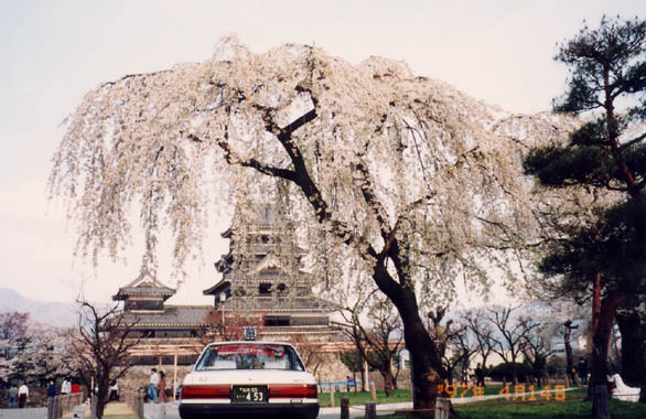 松本市は長野県第二の首邑で、5層天守閣では日本最古と云われる松本城がある。外堀周りを始め城域各所に櫻が植えられ春には多くの人を集める。西側休憩所の天守閣を望む位置に枝垂櫻がある。小振りな若木だが姿が美しく、観光案内パンフの表紙にもなった樹である。