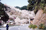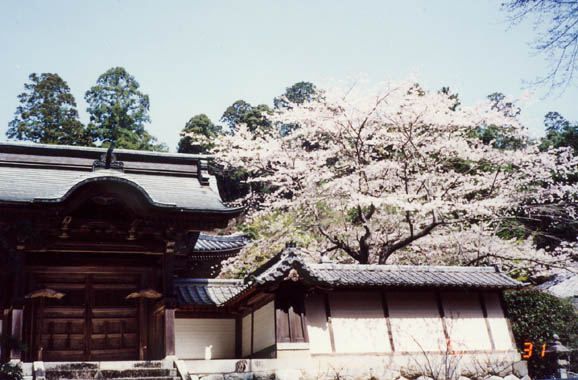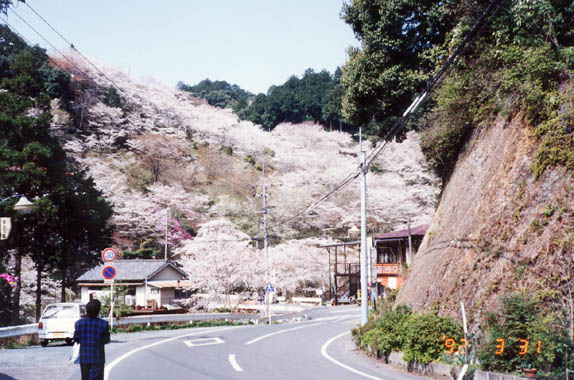 浜名湖の真北に位置する引佐町、その名も奥山地区に方広寺がある。1371年開創の古刹で寺域広大、境内の苔むした岩の上には沢山の羅漢像が点在する。奥山バス停から方広寺山門に向かう途中、山の斜面いちめんに櫻の壁。