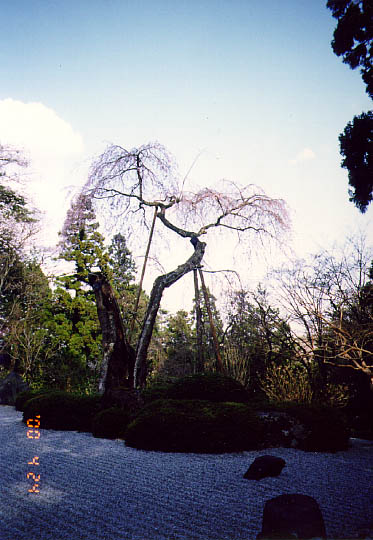 金剛寺よりタクシーで10分程行った青葉区の茂庭地区。東北自動車道・仙台宮城IC近くの綱木裏山の山上に大梅寺がある。慶安3年(1650年)伊達忠宗創建になる臨済宗の名刹。白玉砂利を敷き詰めた本堂前庭の植込に枝垂櫻の老樹が佇立していた。伊達綱村お手植えと伝えられているが、主幹の根元部分が大きく空洞化して裂け見るも痛々しい。それでも支柱に支えられた頂部付近には色付き始めた蕾が僅かに往時の華やかさを偲ばせていた。綺麗に箒目の入った内庭は柵で入れず無人。裏参道には苔むした羅漢像が数体とカタクリの花が目を惹いた。 |