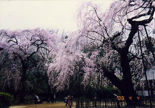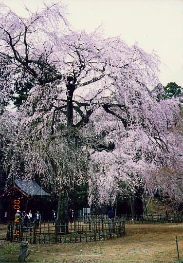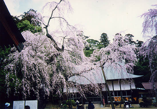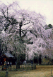 JR四街道駅南方に、元和2年(1616年)創建と伝えられる福星寺がある。道路より数十米奥まった静かな境内に、2本の親子の枝垂櫻が研を競う。親寺である金親村の金光院より徳川家康「お手かけの櫻」を株分けしたものという言い伝えがある。左側の親木は樹高14m、幹囲3.3mの巨木。花付きも良いが上部支幹の折損が樹形を乱し残念。対する右側の子木は幹こそ細いが樹高は親木に達し素晴らしい拡がりを見せていて、これからが楽しみな樹だ。因みに四街道の市の木は櫻という。又境内には中世の砦跡の面影を伝える土塁が残されている。 |
