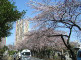 東京都営谷中墓地。参道両脇の並木を始め各所に櫻が植えられており、花が咲き始めると多くの人々が訪れる。中央付近に幸田露伴の小説「五重の塔」で有名な塔があったが、昭和32年人災で焼失した。墓地には横山大観、川上音二郎、鳩山一郎、獅子文六、長谷川一夫など著名人の墓が多い。又同一区域内の別区画内には寛永寺の徳川家墓地があり徳川幕府最後の将軍・徳川慶喜の墓がある。