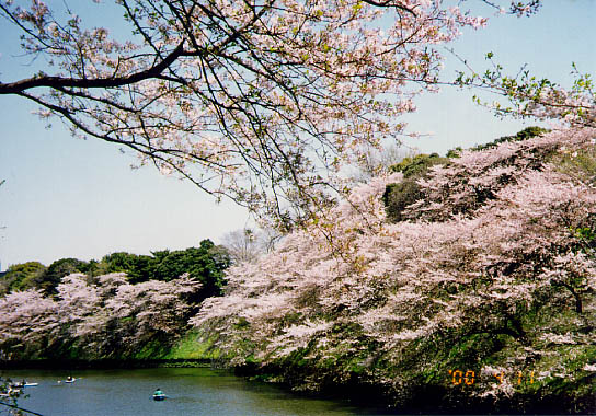 皇居北側、北の丸公園に沿った内濠。千鳥が羽を拡げたような形から此の名がある。半蔵門から田安門に至るお堀端は櫻並木が連なり沢山の人を集める。半蔵濠に面する千鳥が渕公園には「親善サクラ」と称する枝垂櫻や、お濠の水面に枝垂れる櫻が目を楽しませて呉れた。千鳥が淵にはボートも漕ぎ出され、櫻吹雪を楽しんでいた。