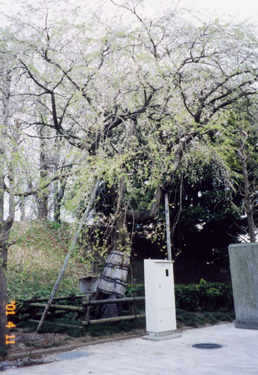 弘道館の西側、旧県庁の堀端にソメイヨシノの櫻並木がある。繁華街に近く、ライトアップされるので、夜桜宴会で賑わうという。傍らに葉桜となった枝垂櫻がある。立札によると明治15年、時の県令・人見寧が県庁新築記念に植えたというから、樹齢は130年位になろうか。満開の姿が見られず残念。