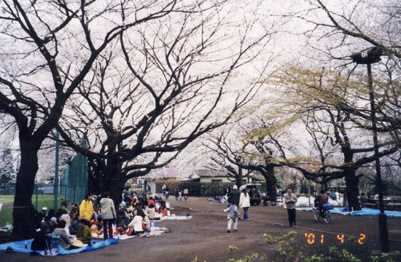 この公園は石神井池と三宝寺池とで成っている。駅に近い石神井池は釣りやボ−ト遊びが出来る。三宝寺池に向かう途中、大きな柳の木の新緑を挾むように櫻が咲いていて、その絶妙な対比が美しかった。対岸には区内随一のヤマザクラがあるようだが、時期が早すぎたのか気付かなかった。全体に櫻の木の数は少ないようだ。奥の三宝寺池は水量豊富な湧水池で、沼沢植物群落は国の天然記念物に指定されている。北の台地には約250本の櫻の高木があり、区内有数の花見場所になっている。黒々とした幹の古木だが、下枝が無いので目線に花が見えず風情に欠けるようだ。 |
