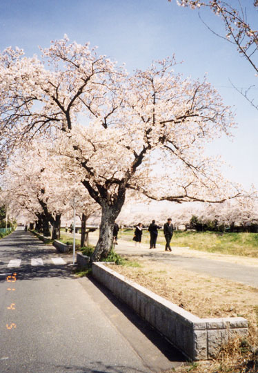 諏訪の櫻トンネルの直ぐ近くから南西に流れる、佐奈川の堤防両側に櫻並木が続く。石やコンクリ−トでない、所謂土手。萌え出てきた、名もない草の緑と映えて麗らかな春の訪れが感じられる。