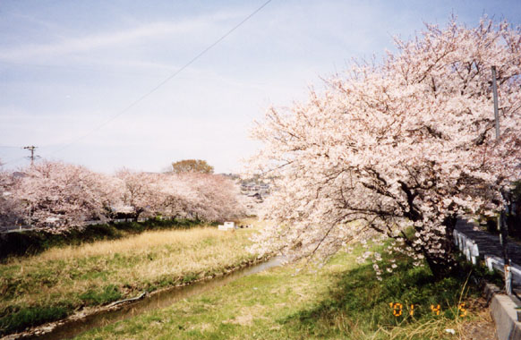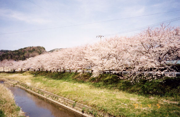 名鉄・御油駅近くを流れる、音羽川の堤防上約1粁に亙り、櫻並木が続く。此所も広々とした土手の真ん中を水路のような、狭い川が流れ、童べ歌の春の景色を思い出させる。市街地を外れているので、人影もなく穏やかな空間だった。近くを旧東海道が通り御油と赤坂の古い町並みや、松並木が残されている。御油の宿外れに十王堂があり、地域の人に守られていた。