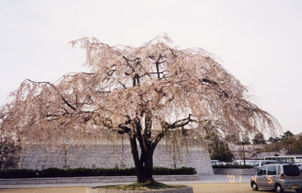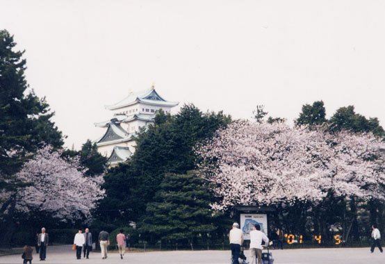 名古屋城は慶長17年(1612年)徳川家康の手により築城。家康の第九子、徳川義直が初代藩主となり、徳川御三家筆頭の尾張徳川家の居城として栄えた。昭和20年(1945年)の空襲で焼けたが、昭和34年(1959年)復元された。城内やお堀沿いには2000本の櫻があり、お城見物でない沢山の人々も引き付ける。石垣上の櫻並木が夕陽に映えて圧巻だった。又能楽堂脇の広場には、中々姿の良い枝垂櫻が1本散り始めていた。