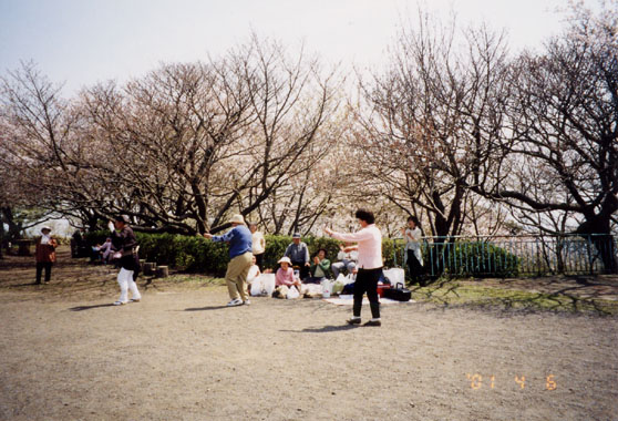 ここは、江戸時代末期から櫻の名所で、戦後日本さくらの会から送られた櫻の苗木などが生長、全山を櫻色に染め上げる。平坦な頂上にはテレビ塔が建てられ、ランドマークとなっている。広場の一角には河内音頭の伴奏で、炭坑節を踊っている数人のグループがいた。リーダーは地元の有名人?テツちゃんの義理の弟で78才とか。手っ甲・脚絆のいでたちで、飄々と踊る姿に、人生達人の境地を垣間見る。