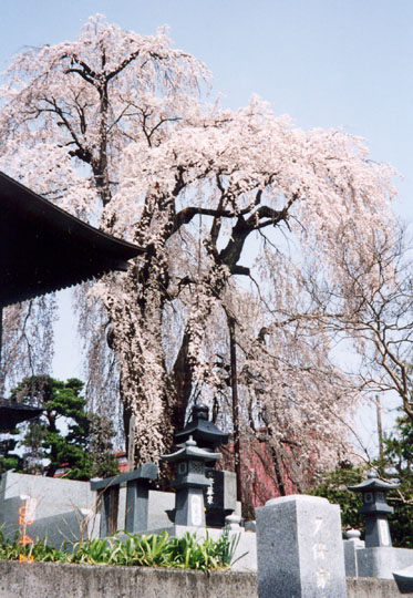 群馬県の中央部、渋川駅より吾妻線で30分程乗ると中之条駅に着く。此所は療養温泉として知られる四万温泉や沢渡温泉行きの降車駅でもある。駅から歩いて数分の所に林昌寺がある。山門を入った境内左手の鐘楼脇に1本の枝垂櫻がある。数年前の樹木医の治療の成果か素晴らしい咲き様であった。高さ16mのビッシリ花を付けた姿は艶麗そのもの。鐘楼脇で弁当を遣い、暫し至福の一時を過ごす。又この寺には閻魔像が多く安置されていたのも嬉しい出会いだった。先ず山門手前両脇に、閻魔大王と奪衣婆の石像。山門の裏に十王の木像。観音堂内部右手の戸棚内に、100体以上の十王木像が祀られていた。 |