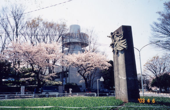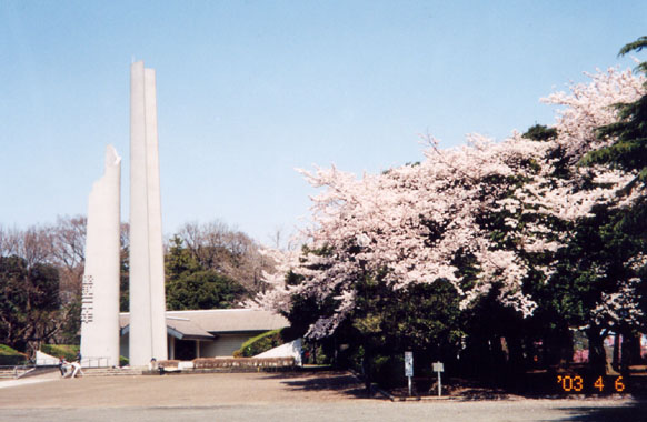 ここは元、神奈川県護国神社外苑地として昭和11年選定されたが、昭和20年の大空襲で神社焼失後は境内全域が公園用地となり、整備の上昭和24年開園されたものである。総面積約28.6fの広大な敷地内の高速道路南側は陸上競技場やラグビー場などのスポーツ施設が多く、余り櫻は無いようなのでテニスコート辺りの櫻を見た後、歩道橋を渡り北側の丘に登る。相撲場、馬術練習場の脇を通り広場に出る。「昭和二十年」と書かれた戦没者慰霊塔のある広場にも櫻があり満開だった。この付近は元々櫻の樹が多く櫻山と呼ばれていたようで、散策かたがたお花見の人も多かった。