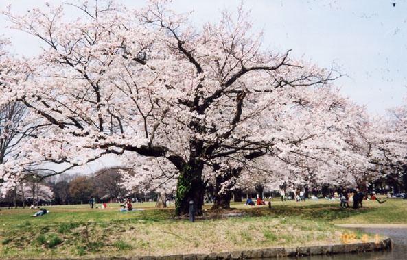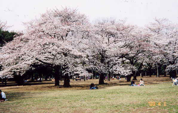 昭和39年に行われた、東京オリンピック大会選手村跡地を利用して、東京都が森林公園として造園、昭和45年に開園した。総面積547,100uの広大な樹林と草地の広場は、隣接の明治神宮の内苑と合わせて、大規模な都心のオアシスとなっている。園内中央広場付近には染井吉野櫻の姿の良い大木が散在、艶を競っていた。園内には染井吉野約650本、山櫻約170本、里櫻約30本があるという。