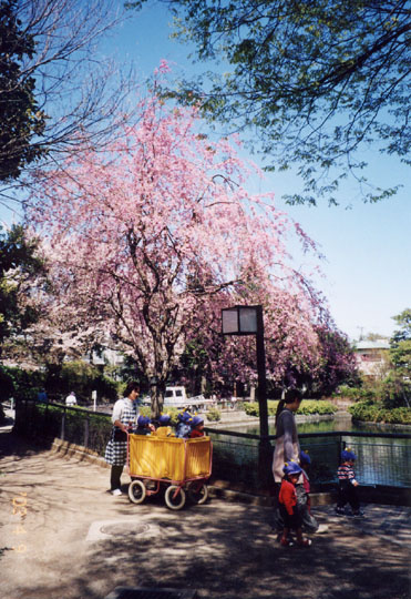 妙正寺の裏にある池を囲んで、妙正寺池公園がある。区立の公園で木製遊具や児童遊場などがあり、今日も大勢の幼稚園児等が遊びに来ていた。池の周りには数本の染井吉野櫻や枝垂櫻 が満開だった。