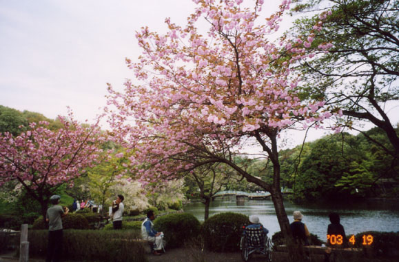 や、今盛りの八重櫻が各所で楽しめた。中でも池越しの櫻の遠景が良かった。休憩所奥の台地には国重要文化財の永井家や東京都指定の有形文化財・荻野家などが移築復元、公開されている。又園内には大賀ハス、椿、梅、花菖蒲、などが植えられ四季折々で楽しめる。近くにはリス園、ダリア園などの施設もありこちらも楽しめそうだ。 |