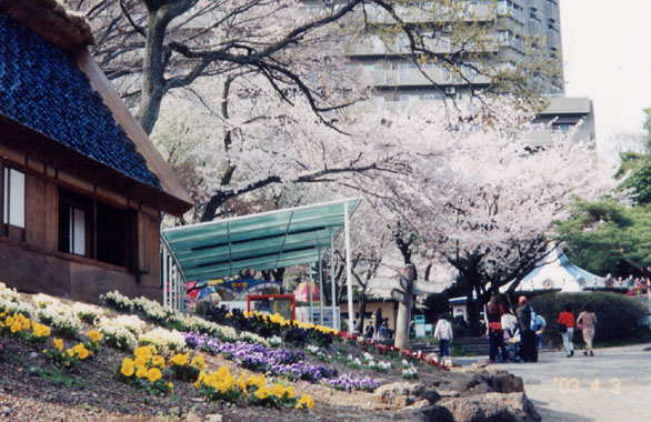 三嶋大社参拝の帰路、楽寿館に入る。ここは元小松宮彰仁親王の別邸として明治23年に造営された所で、昭和27年より市の公園として管理運営されている。園内至る所の岩肌は「三島溶岩流」と言われ貴重な資料である。昭和29年国の天然記念物及び名勝に指定されている。装飾絵画などの多い、数寄屋造りの楽寿館は時間外で拝見できず。広い園内はのりもの広場やどうぶつ広場などもあり、櫻樹も多く市民の憩いの場となっている。駅前口を出るとすぐ前がJR三島駅である。