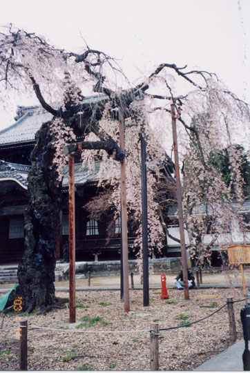 ここ正永寺の枝垂櫻 は、落雷か事故で主幹の一部を失い、片側だけに張り出した枝に咲く満開の姿は痛ましい。当寺の開創は応永15年(1408年)で、その後文禄3年(1594年)現在地に移されたもので、そのころ植えられたという説もある。(飯田市の櫻の樹齢、由緒などの記述に関しては飯田市産業観光課で出されている「南信州銘櫻物語」を参考にしている)
