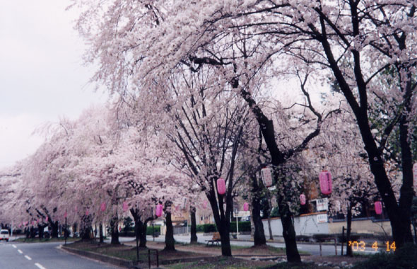 昭和22年の飯田大火で、かっては飯田城の外堀代わりであった寺々の墓地が、都市計画による区画整理で30m道路に生まれ変わった。復興の柱にもなった道路である。その中央分離帯にソメイヨシノを中心に御衣黄櫻、彼岸櫻、枝垂櫻