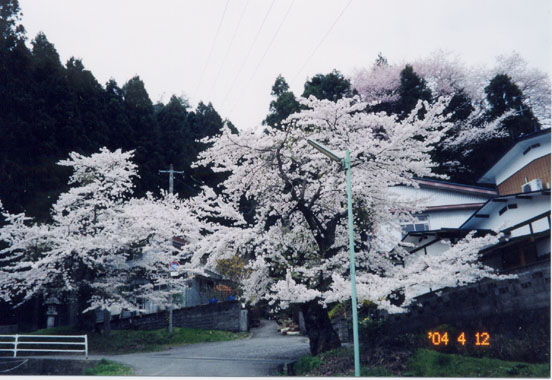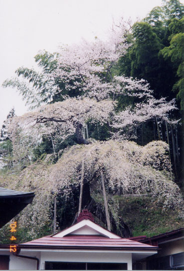 蓮華寺の近くに天台宗・鏡石寺がある。江戸時代に3,4,5代将軍の位牌を安置する御霊屋があったという。本堂右手奥の山の斜面に、二本松でもっとも古いと言われる枝垂櫻 がある。太枝の関係から2層に分かれて見える。こちらも花期は過ぎており残念だった。平成元年市の天然記念物に指定されている。