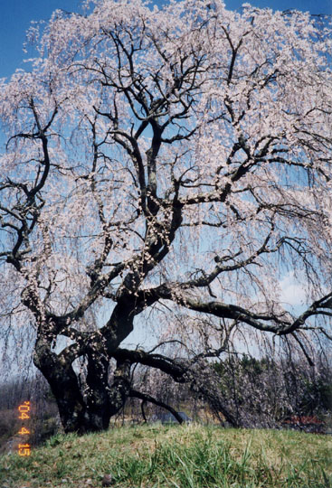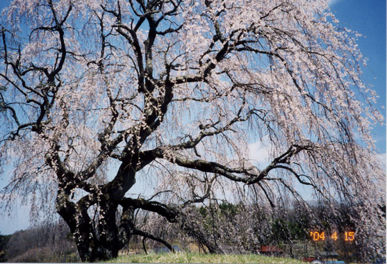 船引町の中でも北寄りの門鹿地区の国道349号沿いに「蛇塚の枝垂櫻 」がある。樹容の良い樹で花付きも良かったが塚の上で足場が狭く全容がうまく収まらなかった。