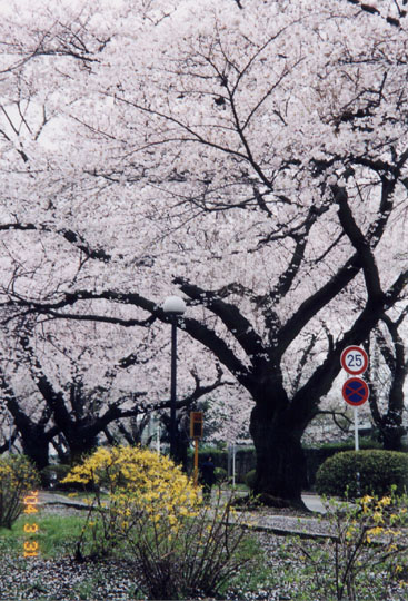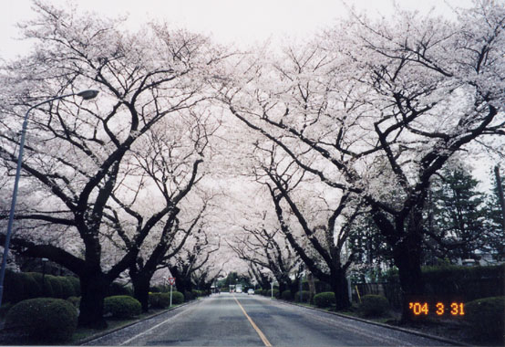東京の西郊三鷹市にある国際基督教大学は緑豊かな広大な空間の中にある。その導入部、正門入り口からバス終点停留所までの約500mほどの道が素晴らしい櫻並木である。樹齢数十年の巨木が列植され、今日が満開の咲き様であった。曇り空が寔に残念。構内一隅には、北海道の名付け親・松浦武四郎が残した1帖茶室「泰山荘」がある。