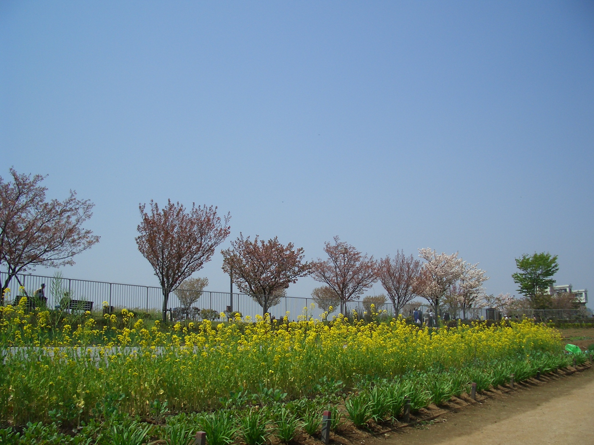 荒川の五色櫻の由来を尋ねて五色堤公園に行く。王子からバスに乗り荒川土手下車。すぐ前に五色堤公園がある。小さな園内には明治24年の「栽櫻記誌」や「ワシントンからの里帰り櫻」の由来記などがあり、大略を知る事が出来た。この付近から江北公園にかけて、荒川堤防上にその櫻並木が続いている。今では35品種、3000本の櫻が里帰りしたようである。