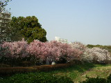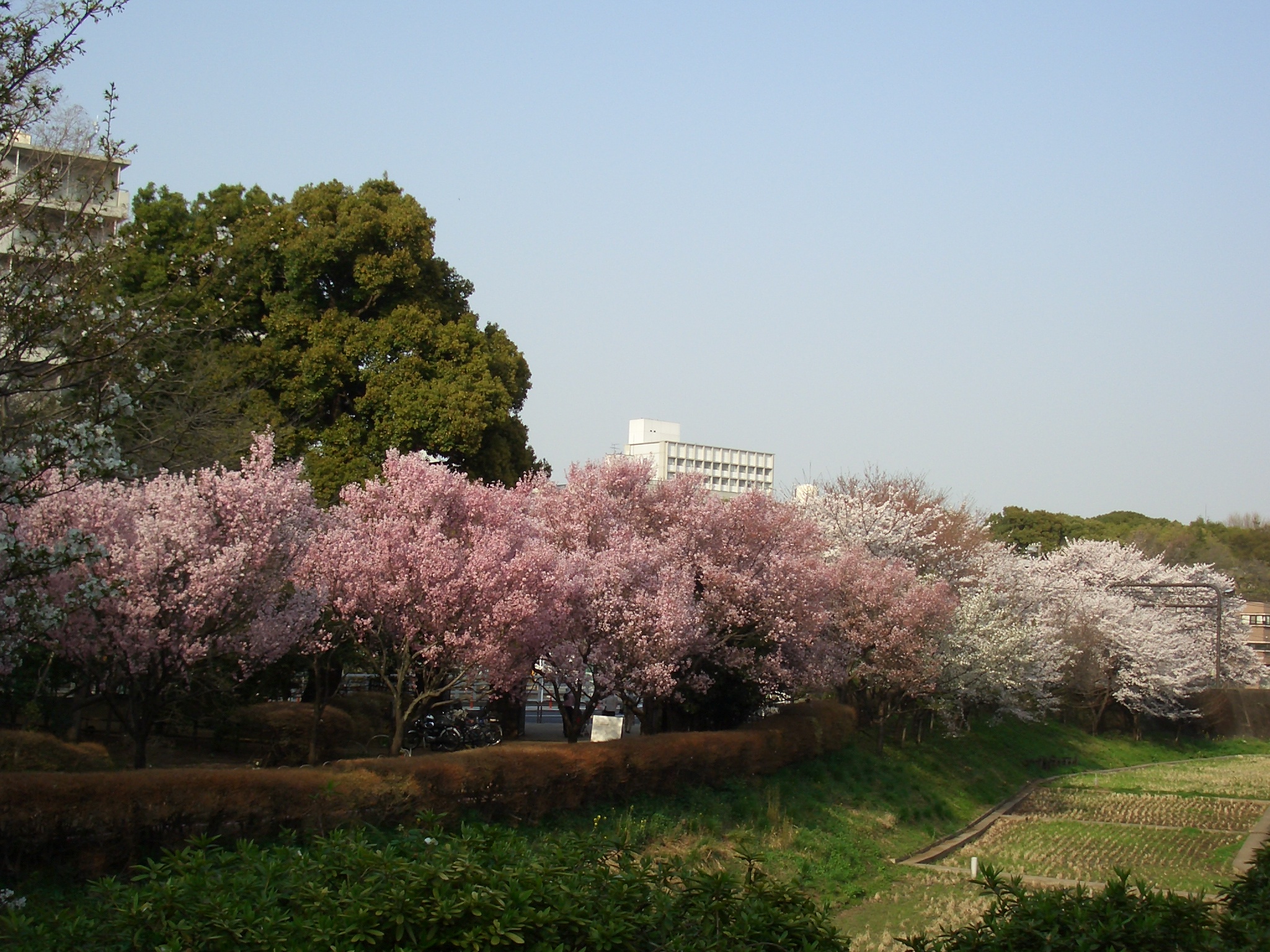 京王線の線路沿いに見えた櫻に、引き込まれるようにして駒場野公園に入り込む。入り口付近にシダレザクラの高木、オオシマザクラ、コヒガンザクラの並木などがあり、予期しなかった櫻を楽しむことが出来た。ここはは東京教育大学跡地を利用して造られた広さ2.8ヘクタールの区立公園で、スポーツ施設などのほか、自然を生かす構想として雑木林の一部や池がサンクチュアリーになっている。