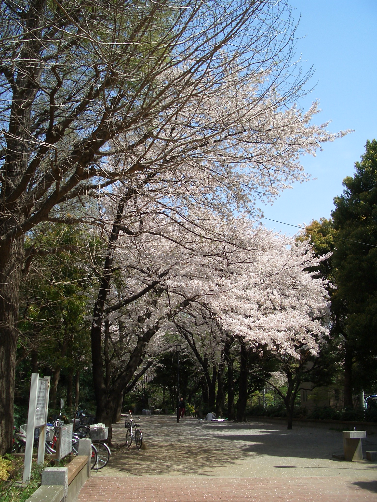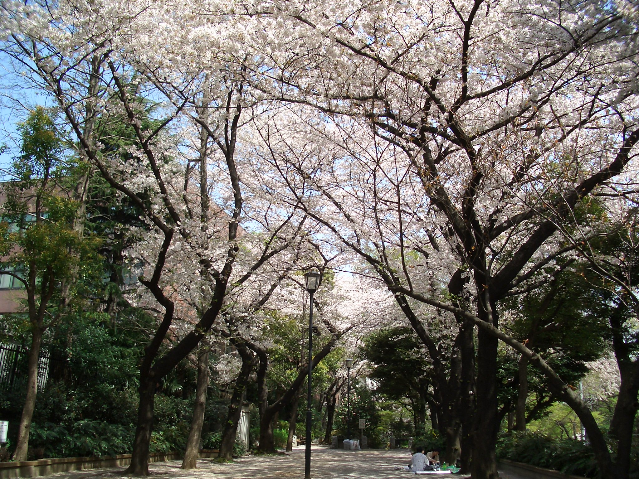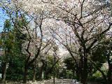 茗荷谷駅を出て北方にしばらく行くと、筑波大学の脇、湯立坂に沿って窪町東公園がある。階段のある細長い園地は緑が深い。千石側出口付近にソメイヨシノ数本があり満開だった。春日通り側飛び地にはドイツとの友好都市提携のシンボルとして、一角獣を中心とした彫刻があるようだ。