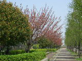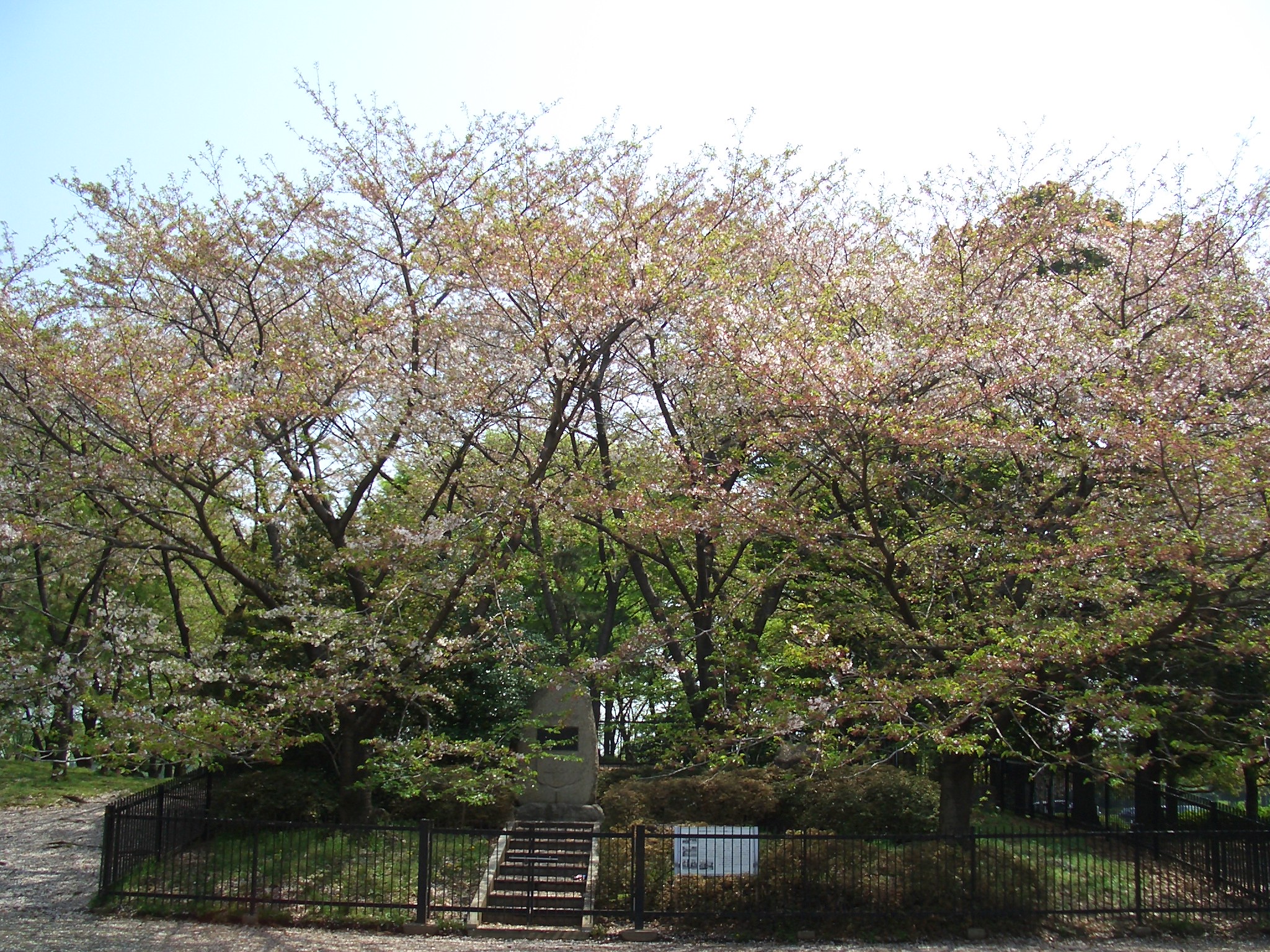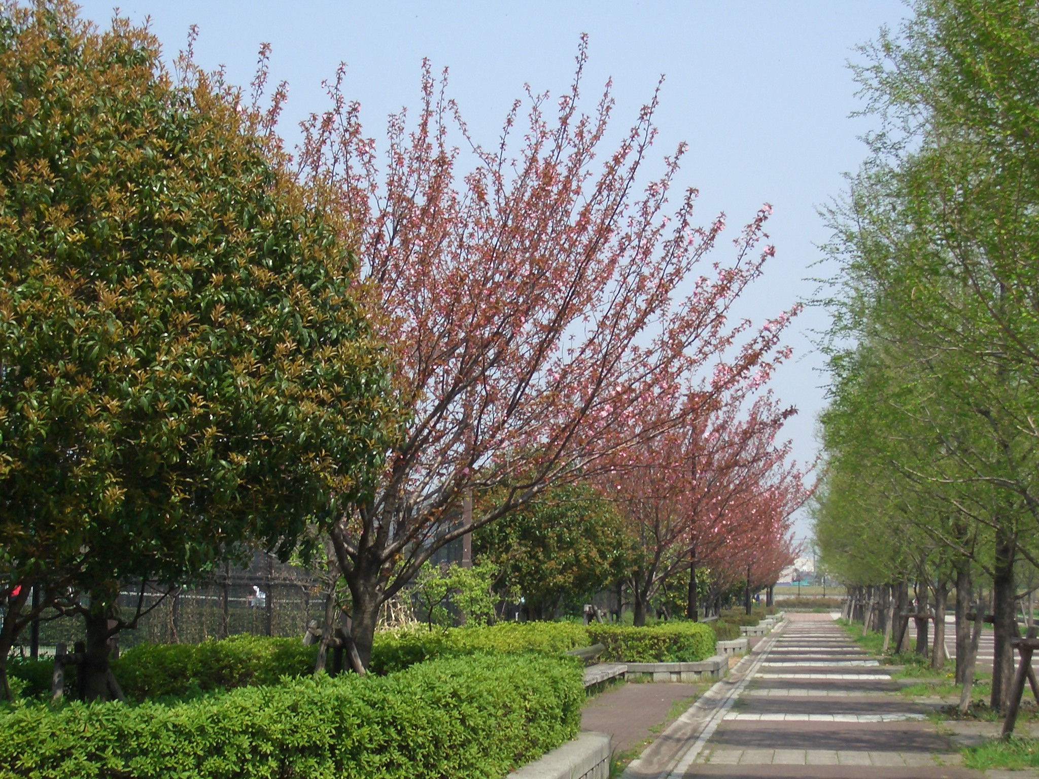 都立・舎人(とねり)公園は昭和56年開園の広さ513,000uを誇る、都内最大級の公園である。園内は道路によって大きく四つに区画され、野球場、陸上競技場、テニスコートや自由広場、キャンプ広場などが配置されている。広い園内は交通の便が悪いせいか人影は少なかった。管理事務所前の道路沿い園地にレーガン櫻がある。ワシントンのポトマック河畔の苗木が、昭和56年レーガン元大統領夫人の尽力により里帰りしたものという。樹種はソメイヨシノで、花は殆ど散っていた。テニスコート脇にある濃いピンク色のサトザクラが満開で目を惹いた。 |