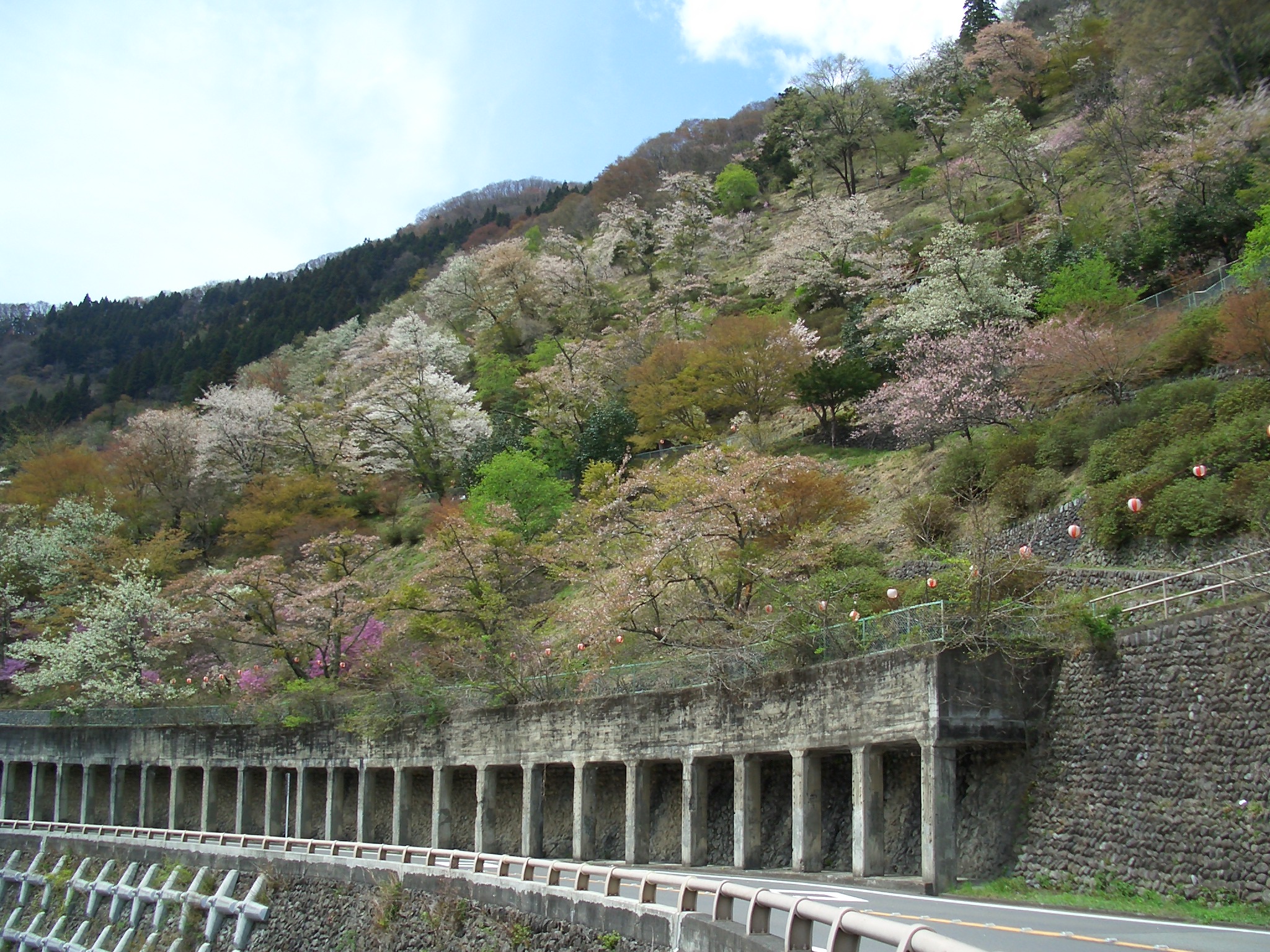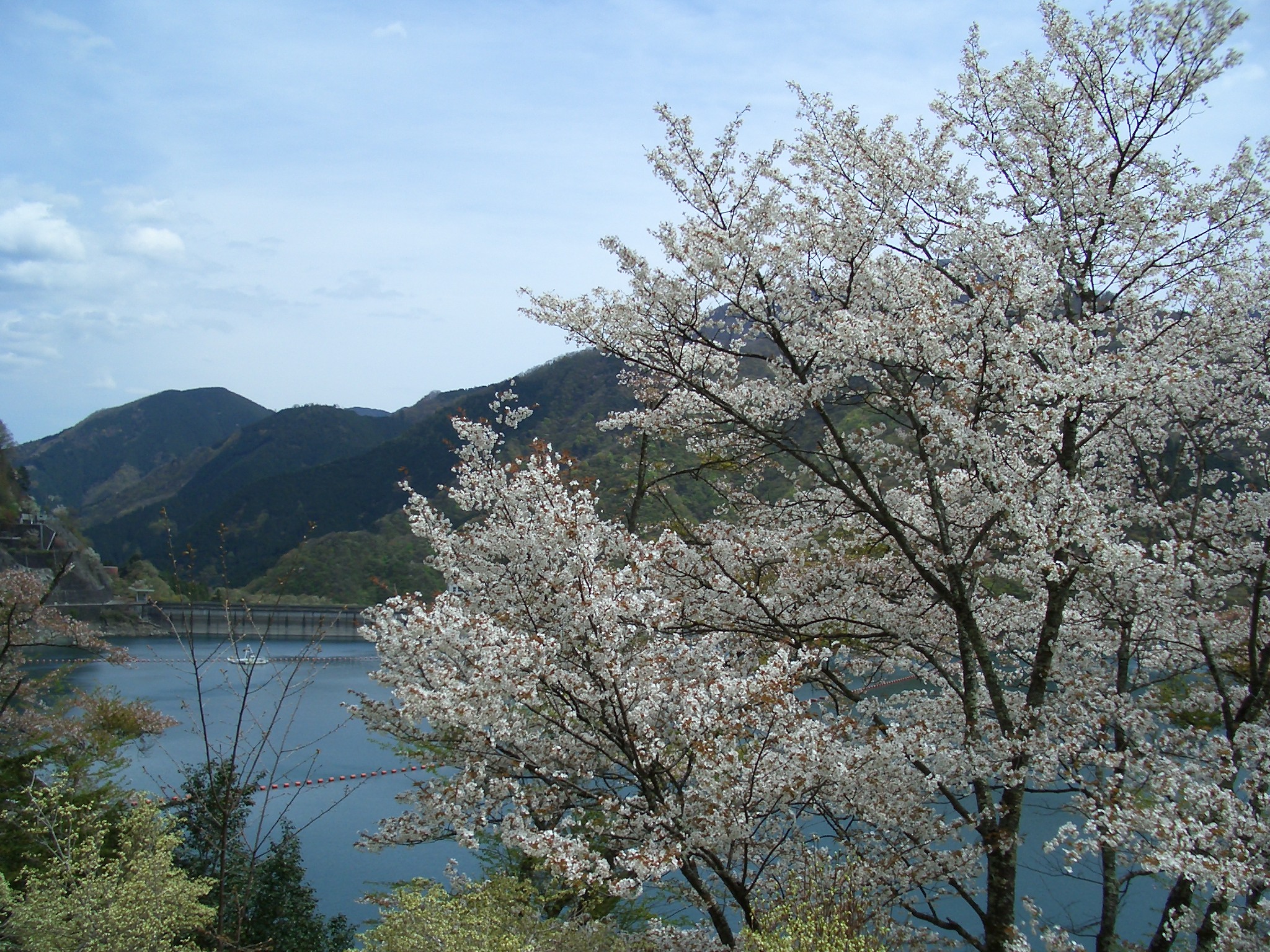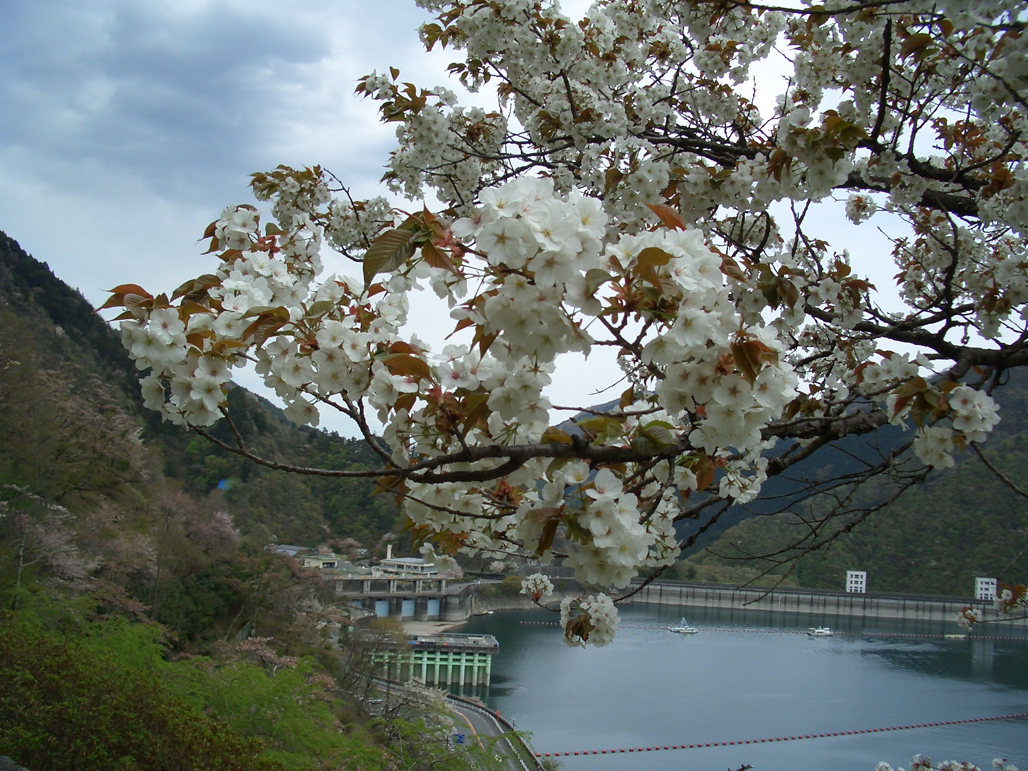 奥多摩湖のバス停付近には売店も多く出て賑わっていた。駐車場先の展望台登り口より斜面を登って行くと段々展望が良くなってくる。ソメイヨシノは終わったがヤマザクラの多彩な色が春の息吹を感じさせた。前の人につられて道無き急斜面を登り始めたが、体力の限界を感じ諦めて下山。丁度来たバスに乗り込み奥多摩駅に戻る。駅近くの青梅街道に蔵付きの商家・木村家がある。なかなか風格のある立派な建物である。奥氷川神社の3本杉を見て、日原川の川原に下り遅い昼食を摂る。 |