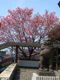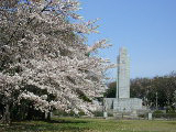 千葉公園西部に護国神社が隣接している。昭和42年に亥鼻山から現在地に遷座された新しい建物である。社前左手にベニシダレザクラが植えられていた。本殿右手奥の広場には石造の大きな忠霊塔が鎮座、地元有志の方々が草むしりなどに精を出されていた。