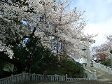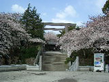 集めている。参道の石段脇や大鳥居の廻りに櫻の大木が咲き競っていた。