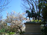 元、有栖川宮家跡地で現在は区立公園となっている。地下鉄広尾駅側入口付近の池畔にシダレザクラの若木があり婉然と迎えてくれた。台地上の広場の周りにはソメイヨシノの高木が満開で蒼空を背に美しかった。園内にはソメイヨシノの他にヤマザクラ、オオシマザクラなど11種類の櫻があるようで写真入りの表示板があった。広場の一隅には明治維新時に活躍された有栖川宮熾仁(たるひと)親王の騎馬銅像がある。又園内西部には都立中央図書館が設けられている。