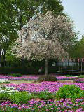 東京の北部、北区と板橋区の境界線上にあるこの公園は、元荒川の名残である浮間ケ池を中心として造られた都立公園である。風車のある一画では満開の八重櫻を背に十数人の太公望が釣り糸を垂れていた。園内東北部にある「桜草圃場」では、さくら草祭りの最中で大勢の人が見に来ていた。中央の円形花壇には紅白のさくら草が植え込まれ、真ん中に満開の枝垂櫻 が唯1本佇立。素敵な構図だった。特設の鉢棚には地元保存会の方々が丹精込めて仕上げた数十鉢が展示されており壮観だった。