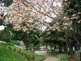 江戸川区の南東部、旧江戸川に面して雷(いかずち)公園がある。此処にソメイヨシノが終わった後に咲く「御衣黄(ぎょいこう)」という櫻が見頃を迎えたというので出かける。園内北側にあるこの木は高さ約6.5もある高木で淡い緑色の花をびっしりとつけていた。高貴な人が着る衣にたとえて名付けられたという。園内には他にもピンク色のヤエザクラが数本目を楽しませてくれた。